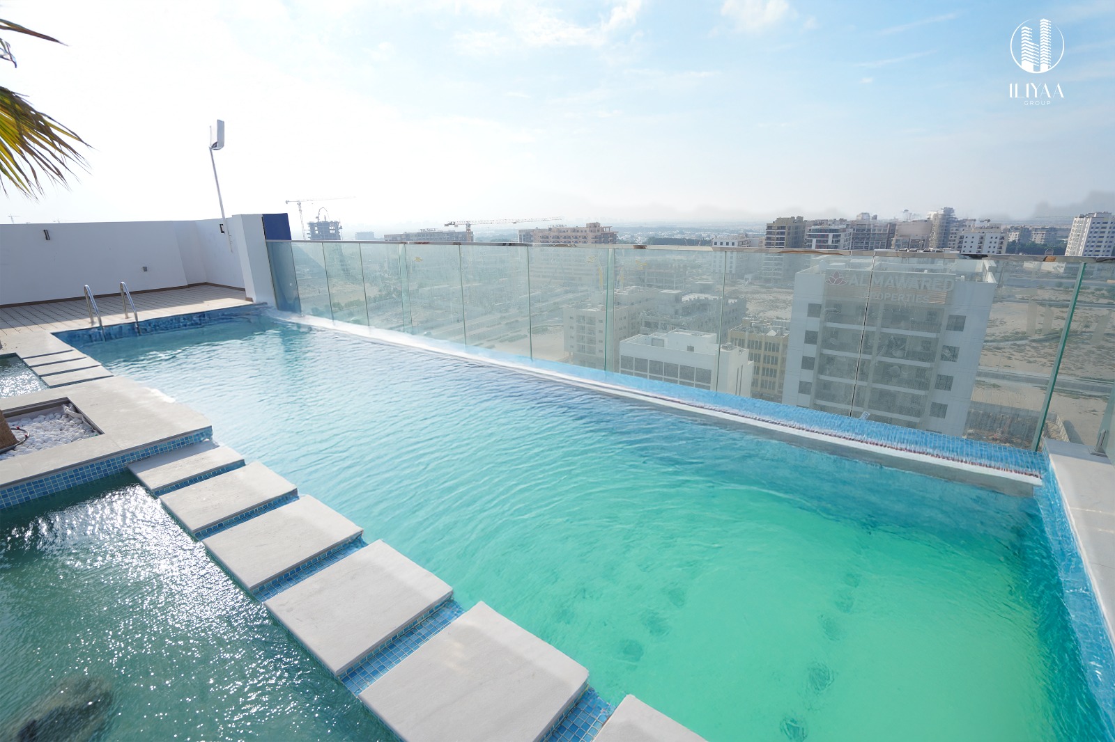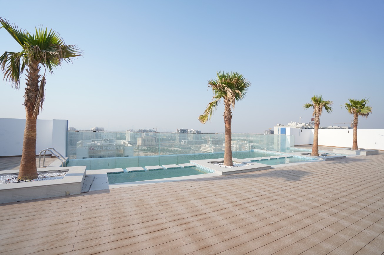 amenities, including a swimming pool, jacuzzi, roof-level gym, kids’ play area, and a